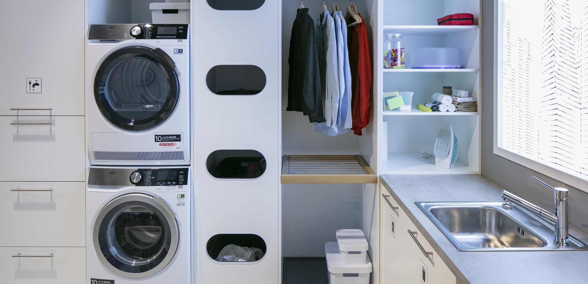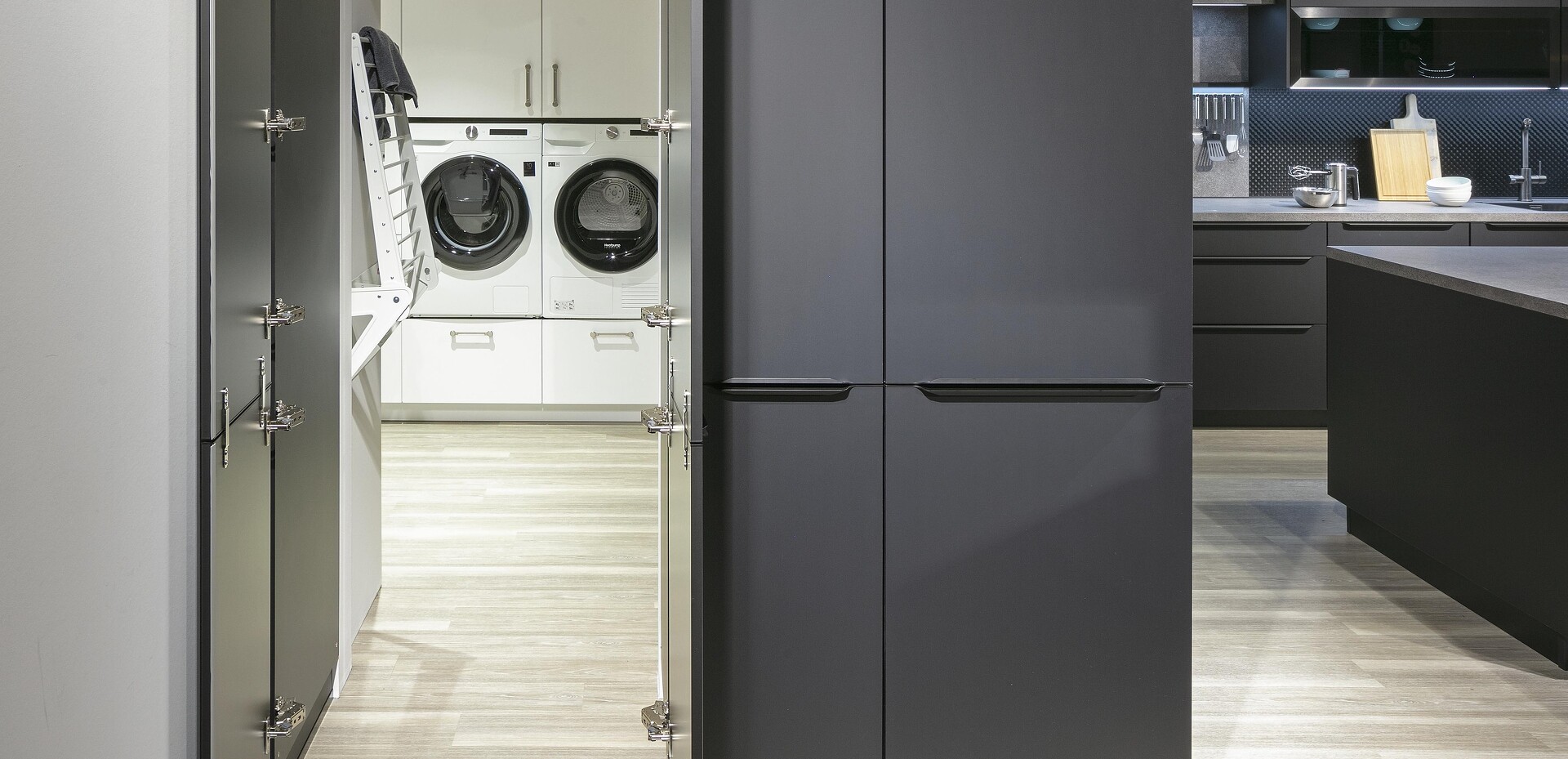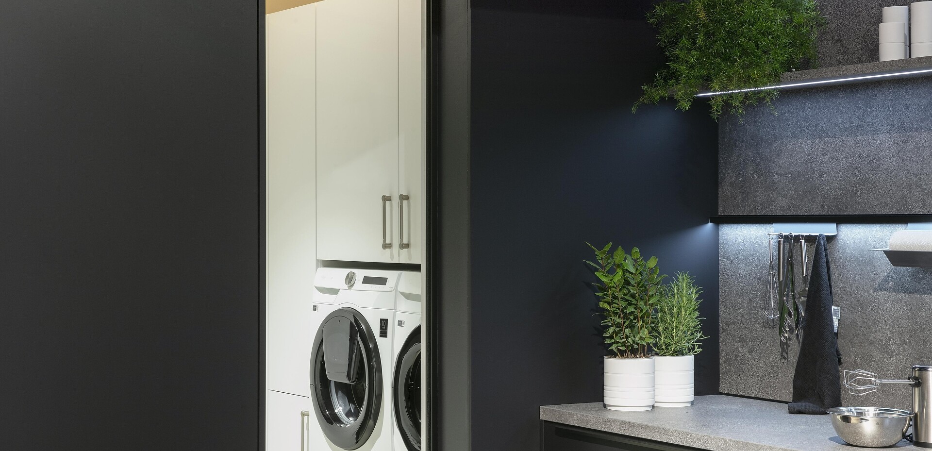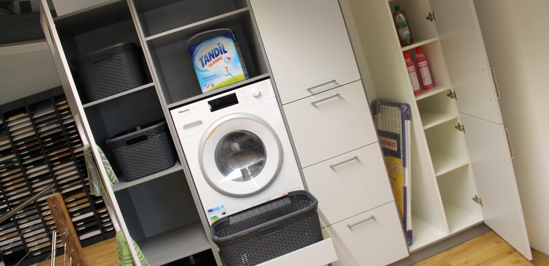 Seit sich die Küche öffnet und immer mehr zentraler Mittelpunkt des Wohnens wird und man oft keinen Keller mehr zur Verfügung hat, stellt sich die Frage: Wohin mit den Dingen, die man täglich braucht, die aber nicht für jeden gleich sichtbar sein sollen? Themen wie Bevorratung, Reinigung & Wäschepflege sowie Recycling werden in diesen individuellen Designlösungen je nach Kundenwunsch berücksichtigt! Sehen Sie selbst!