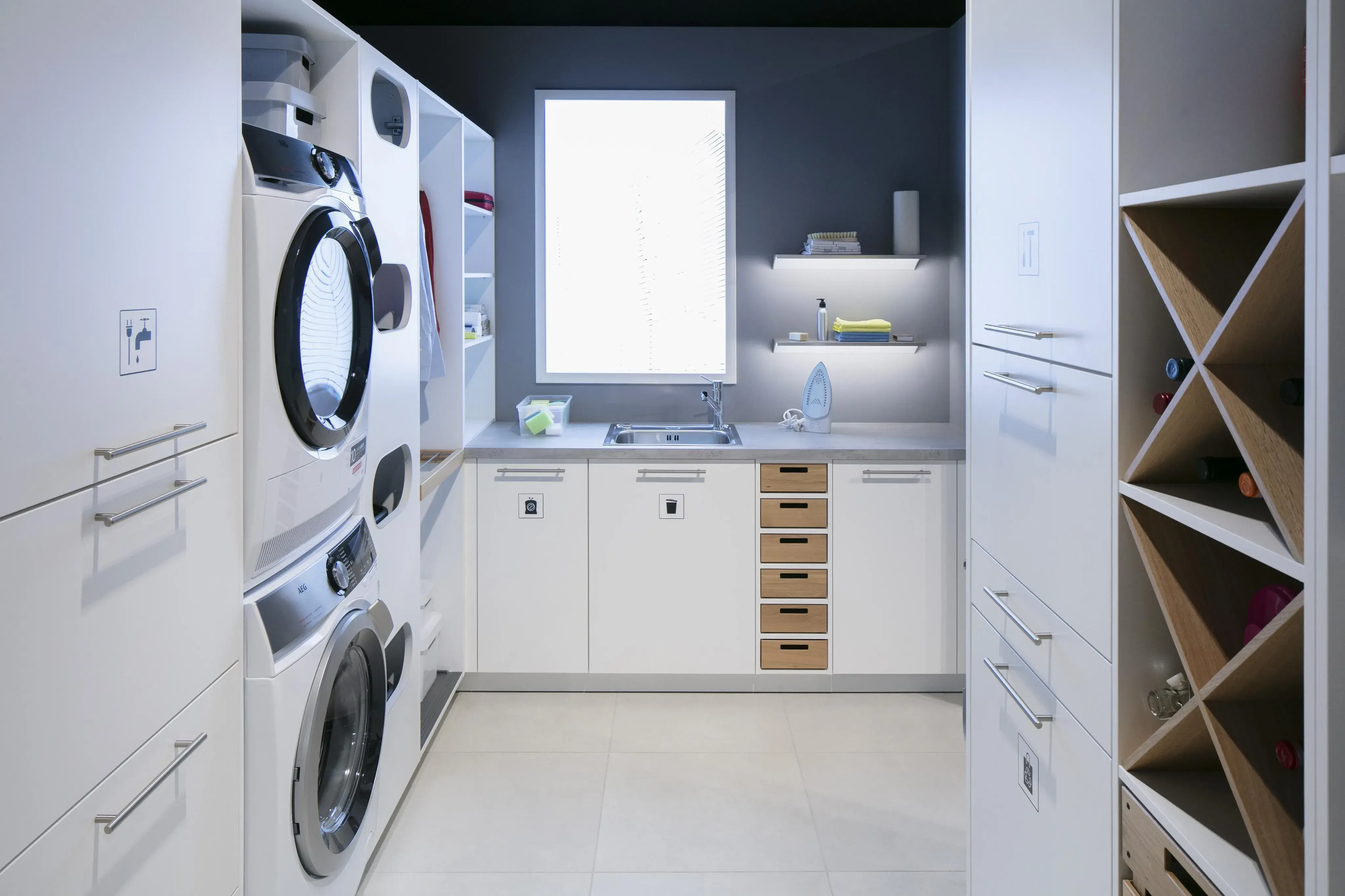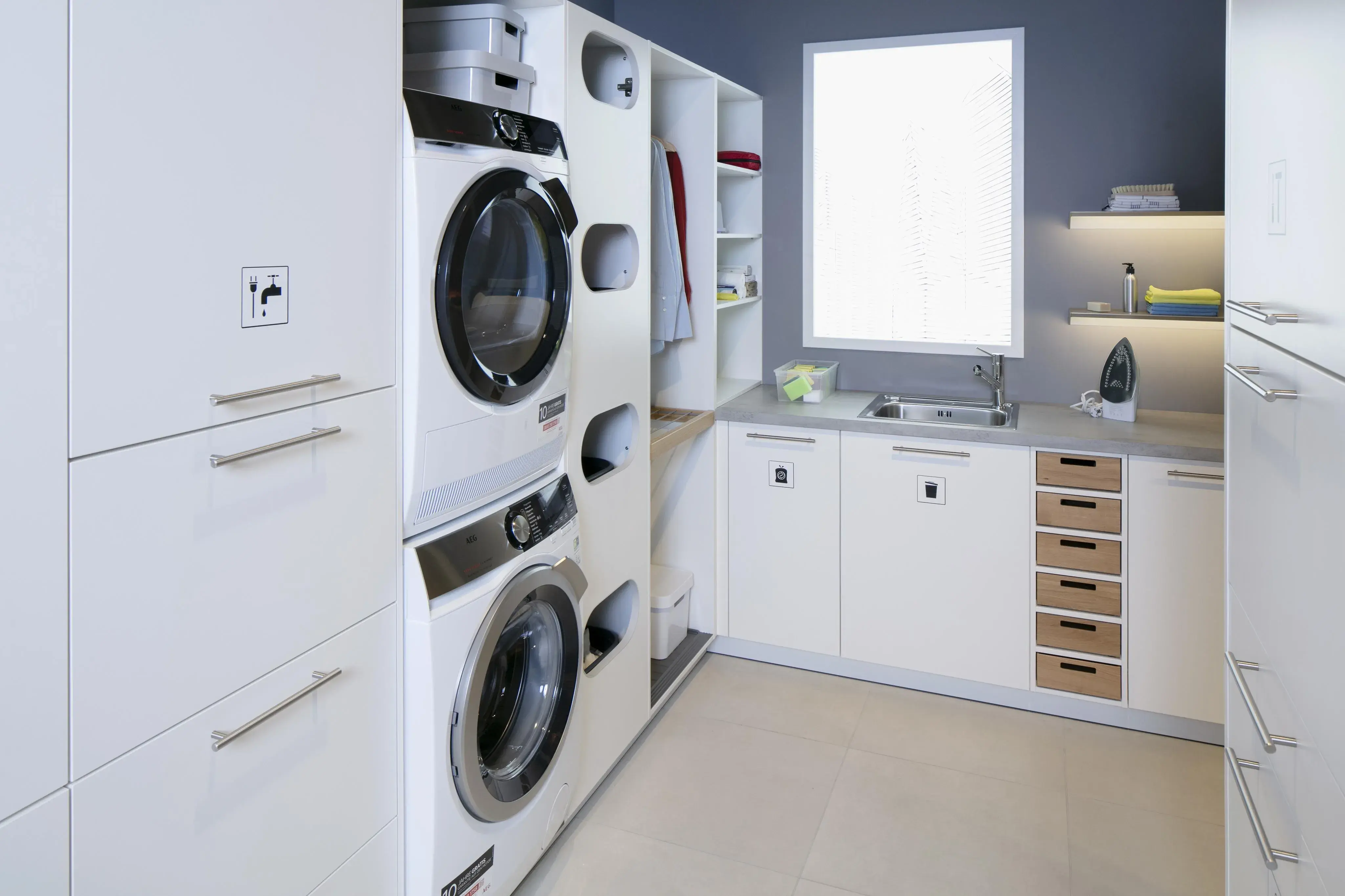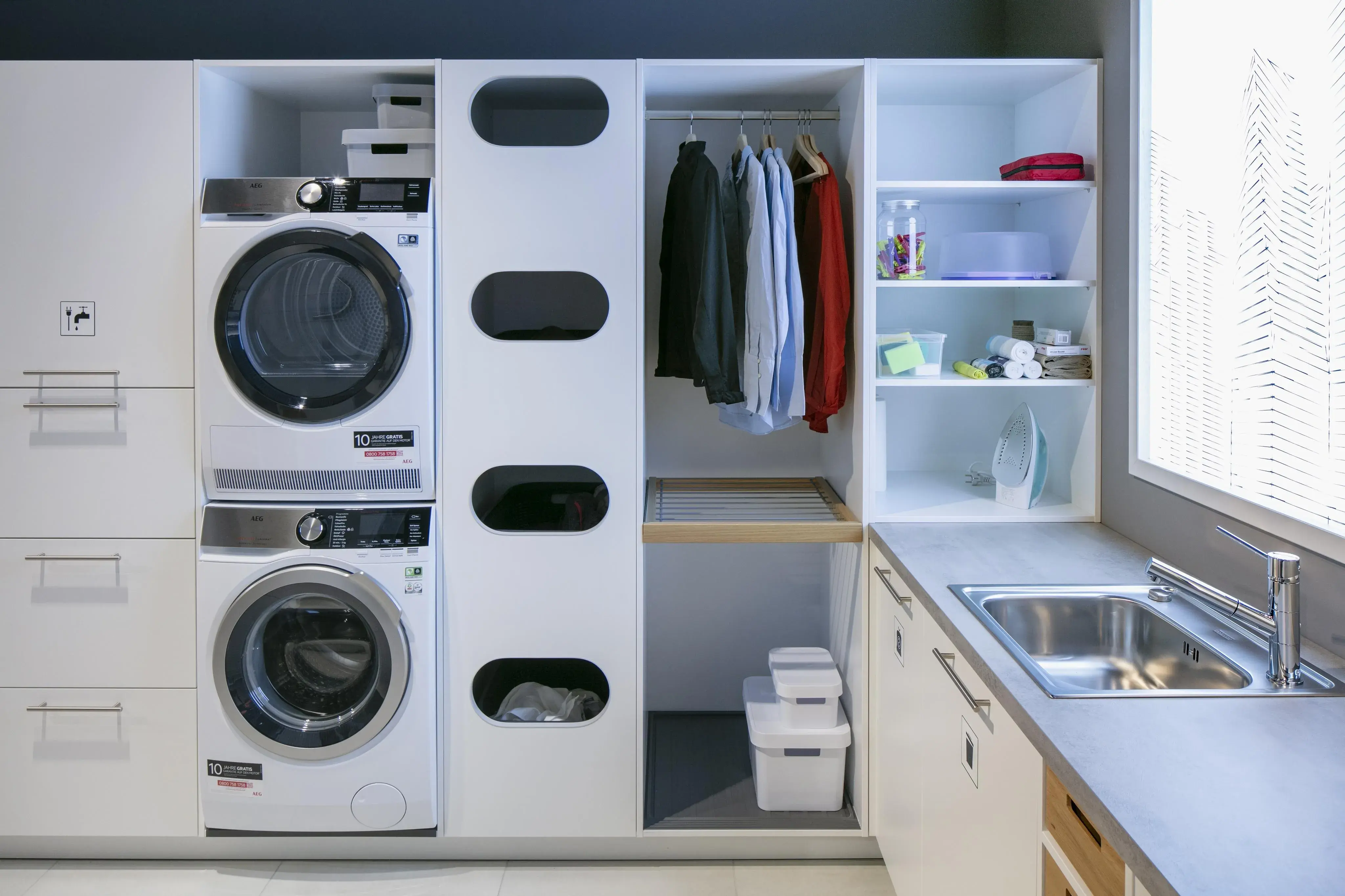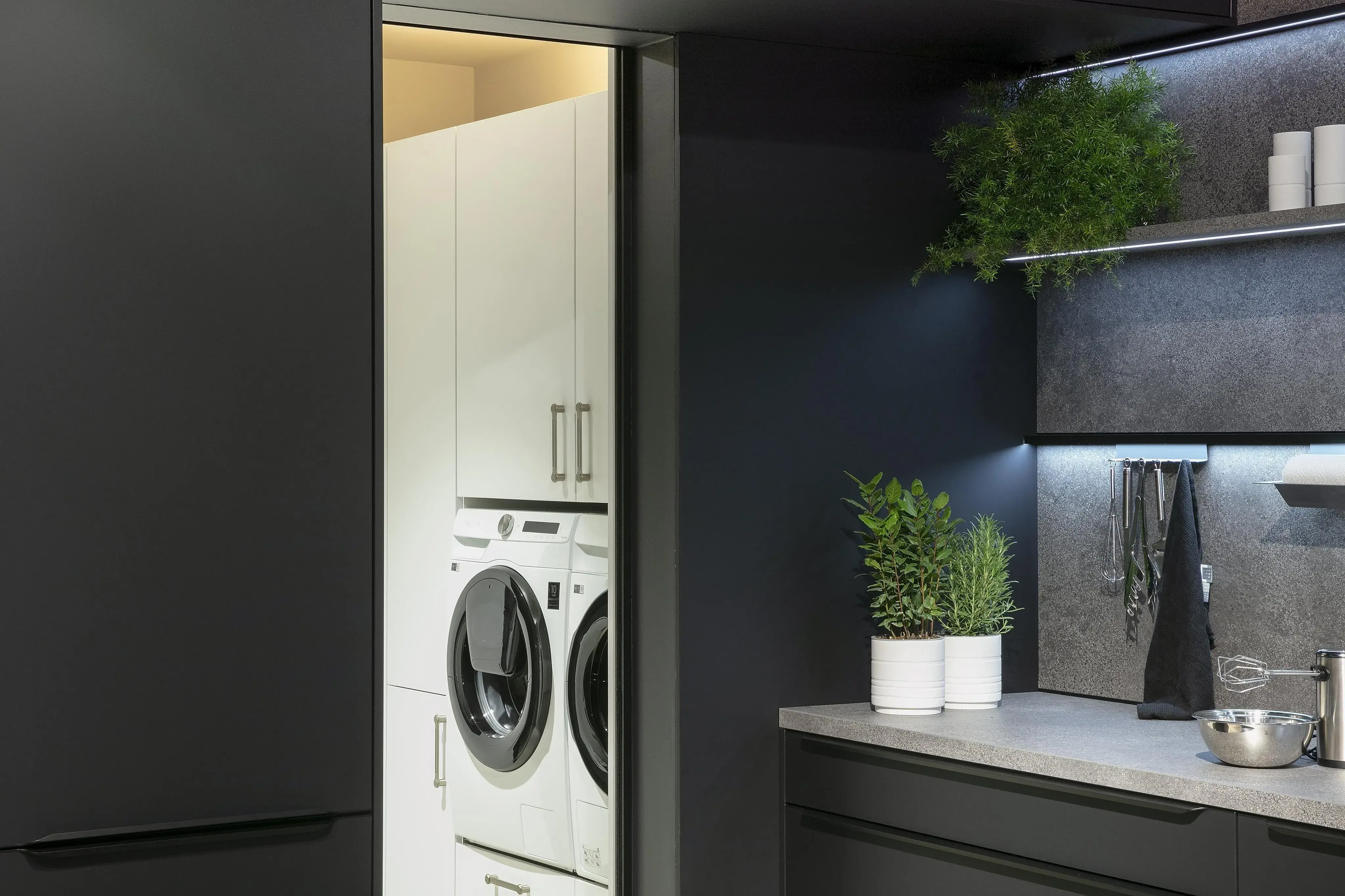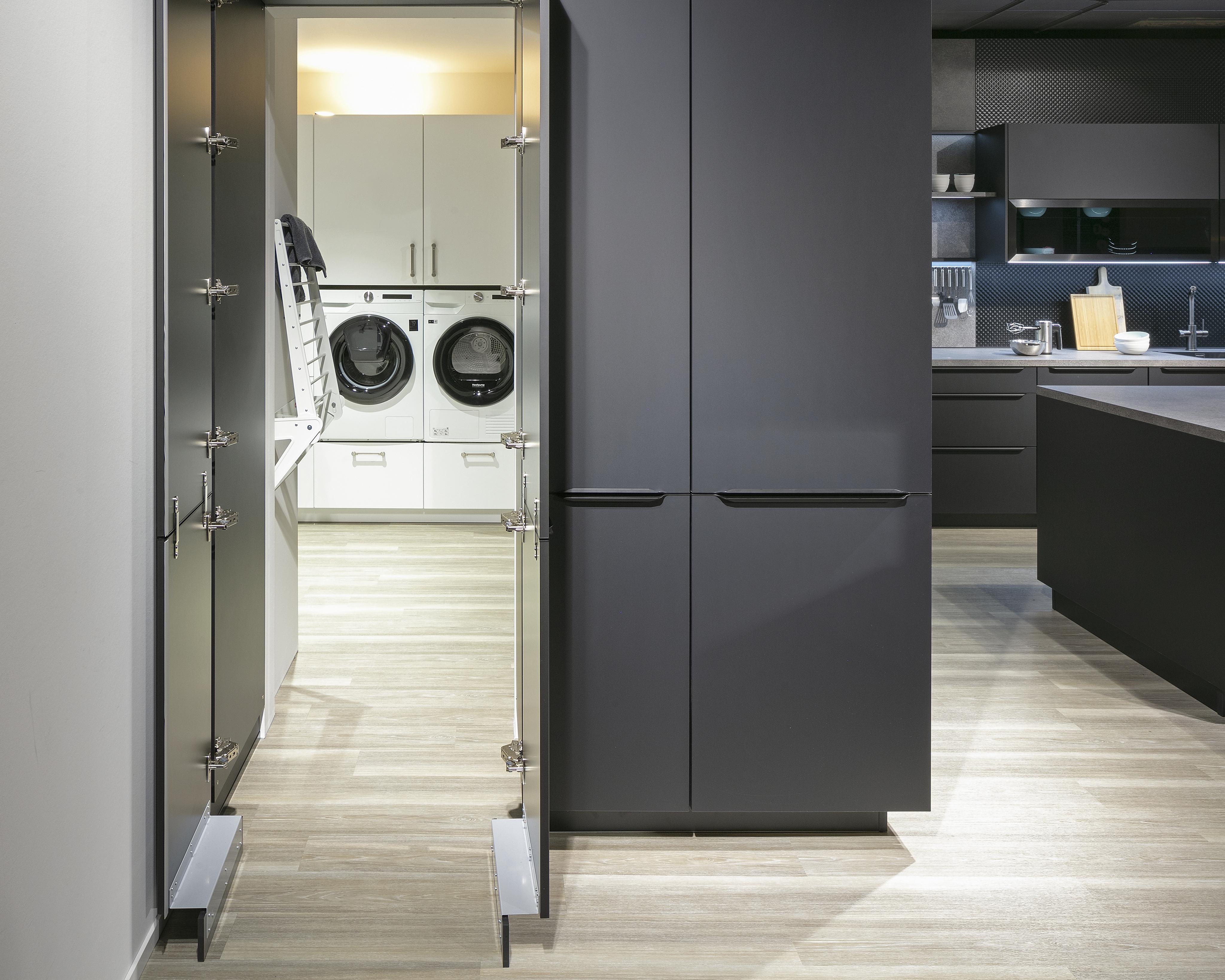 Seit sich die Küche öffnet und immer mehr zentraler Mittelpunkt des Wohnens wird und man oft keinen Keller mehr zur Verfügung hat, stellt sich die Frage: Wohin mit den Dingen, die man täglich braucht, die aber nicht für jeden gleich sichtbar sein sollen? Themen wie Bevorratung, Reinigung & Wäschepflege sowie Recycling werden in diesen individuellen Designlösungen je nach Kundenwunsch berücksichtigt! Sehen Sie selbst!