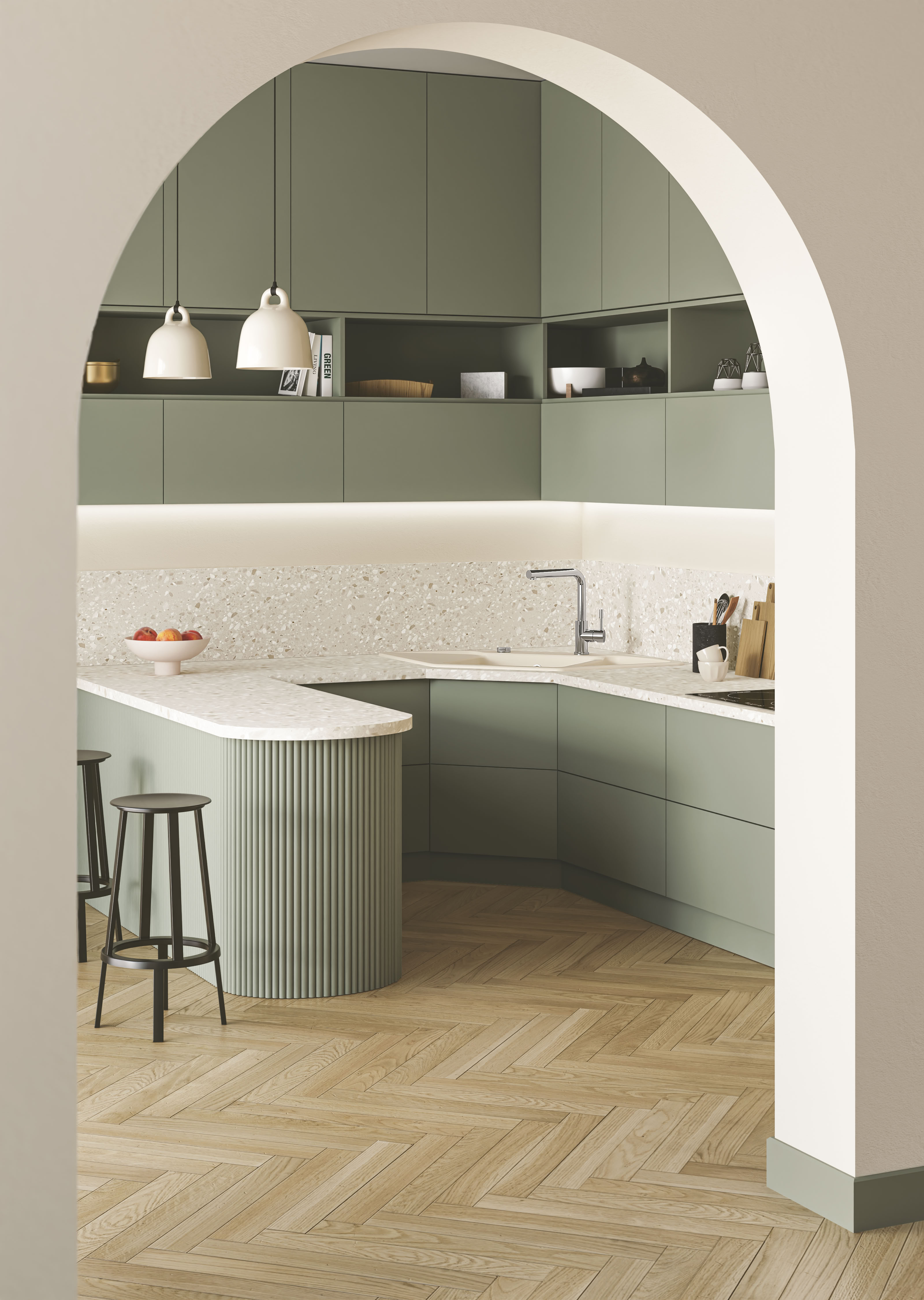 Mit der neuen Eckspüle der Kollektion Subway Style wird selbst die kleinste Küche zum Raumwunder. Durch ihre clevere Eck-Integration schafft sie Platz, wo sonst ungenutzte Fläche bleibt.